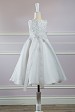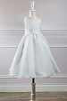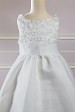 | An Organza gown lined with Matte Satin and made sleeveless with a band and bow at the waist. The bodice has been fully embellished with floral accents and sits above a floor length skirt. Available in White or Ivory. This style is offered with same delivery schedule as Bridal; and can also be ordered with 7 week rush service, fees apply. (Shown in White) |